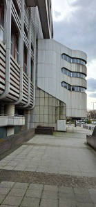| Blick von der Neuen Kantstr. auf den Haupteingang des ICC. | Blick von der A100 auf das Internationale Congress Centrum (ICC). | |||||||||||||||