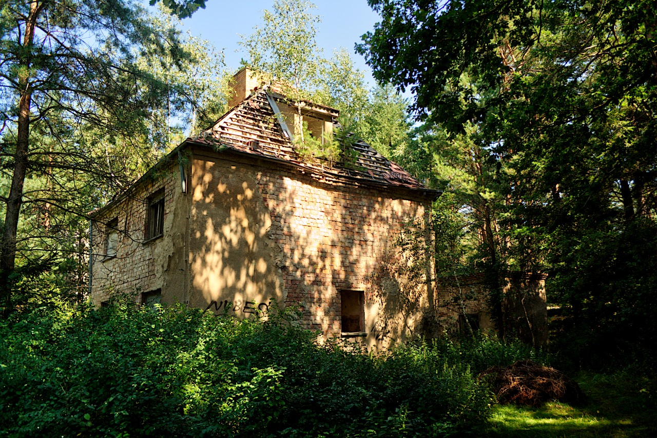 Überwachsenes Gebäudeensemble im Wald am Stechlinsee: Lost Place bei Neuglobsow. | |||||||||||||||||