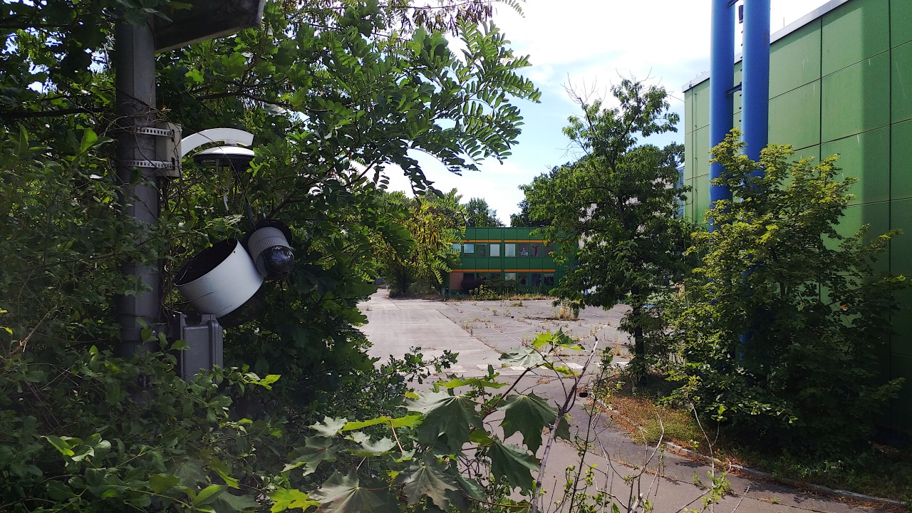 Das Gelände ist abgesperrt und bewacht! Leicht beschädigte Überwachungskamera. | Tanks auf dem Tetra-Pak-Gelände |
